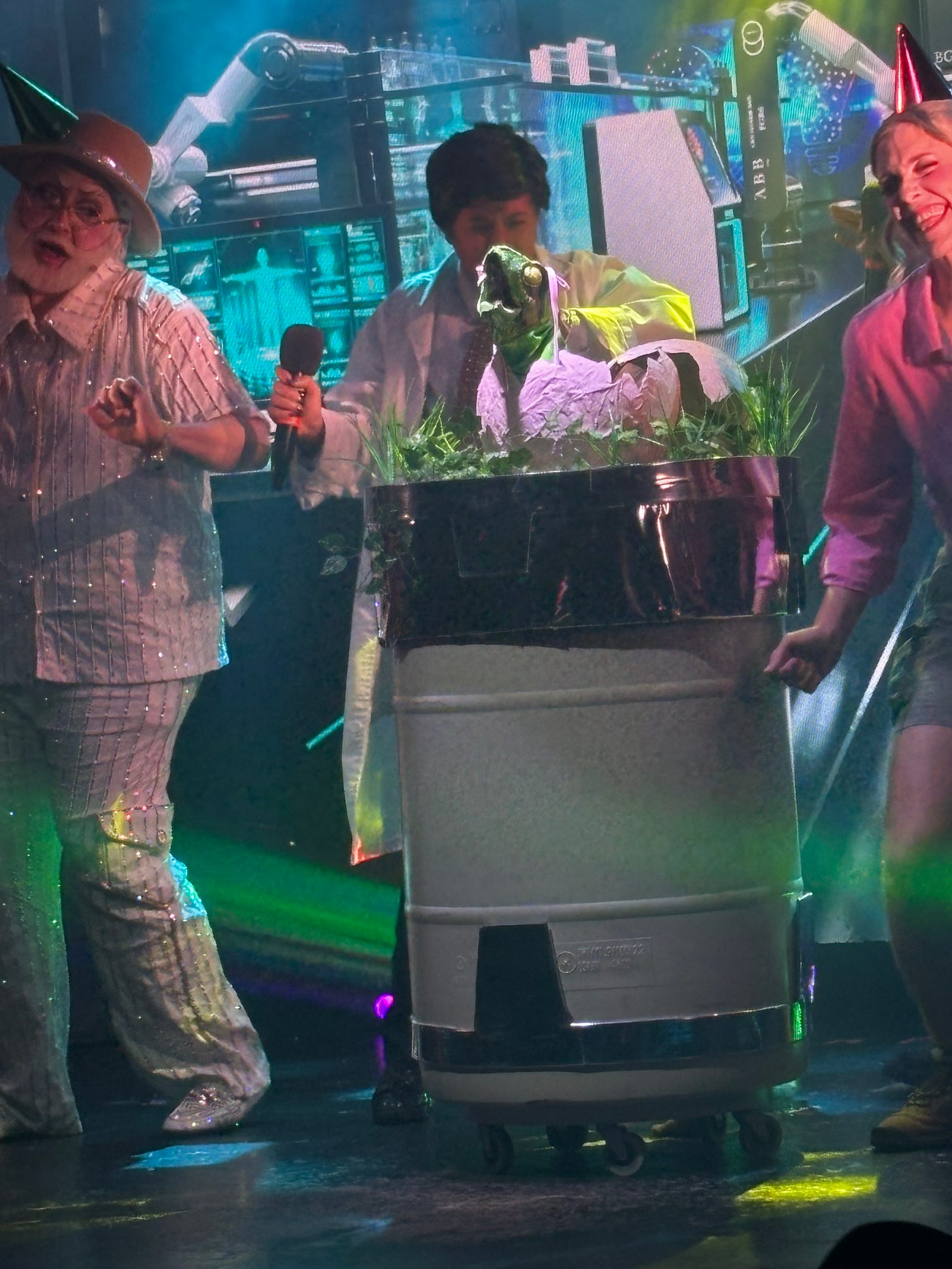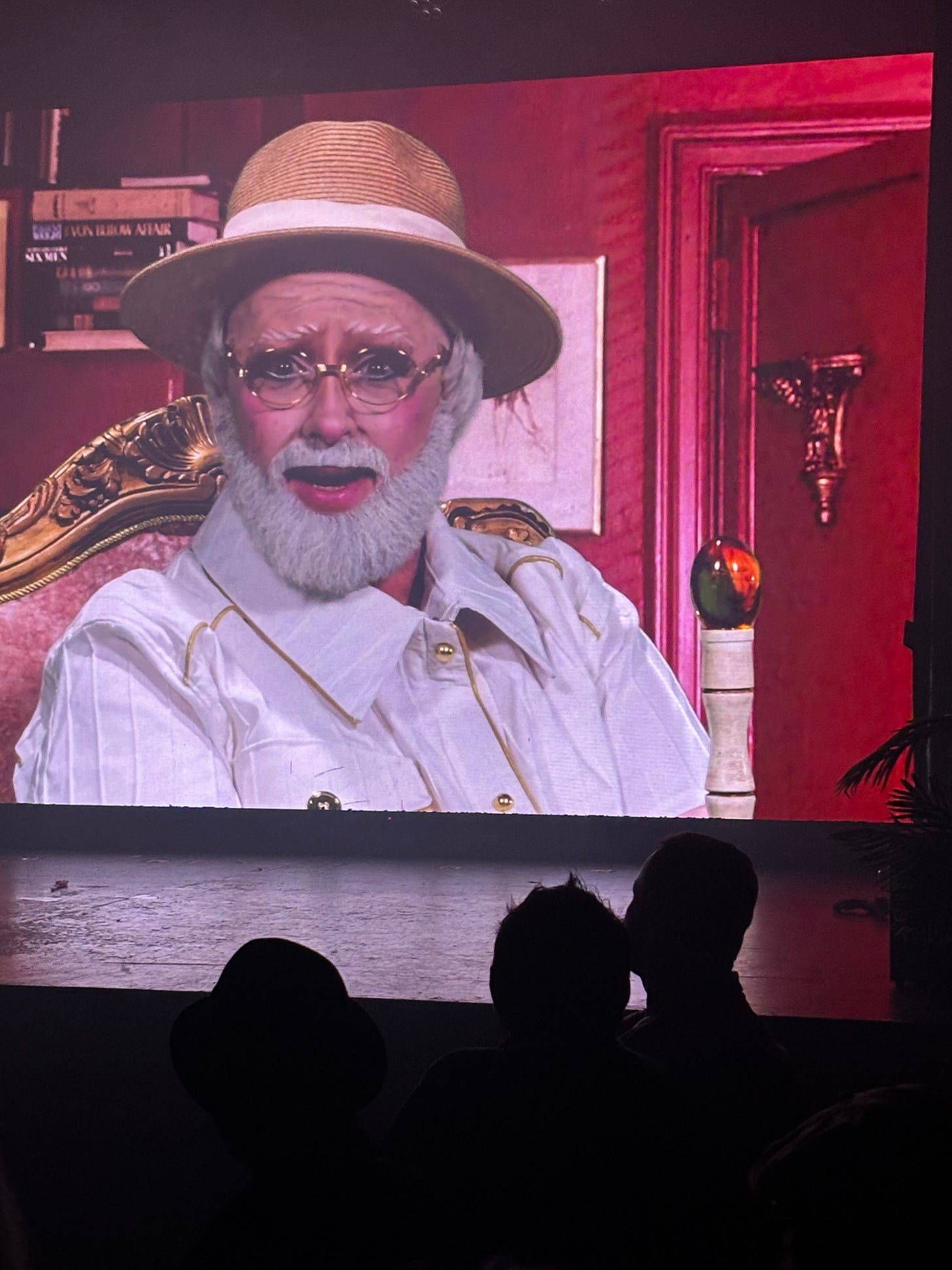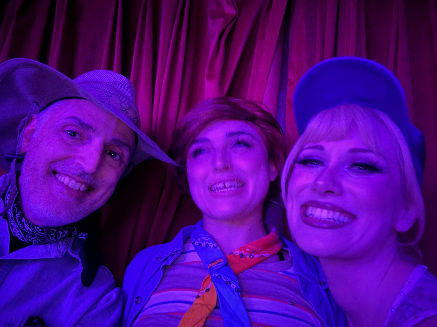 The two grandchildren (Barbie Bloodgloss and Kitty Litter) were, shall we say, a great deal bawdier than their film counterparts. During intermission, they were gracious enough to pose for a selfie with me, all the time professing that since this was 1993, they had no idea what a “selfie” was: