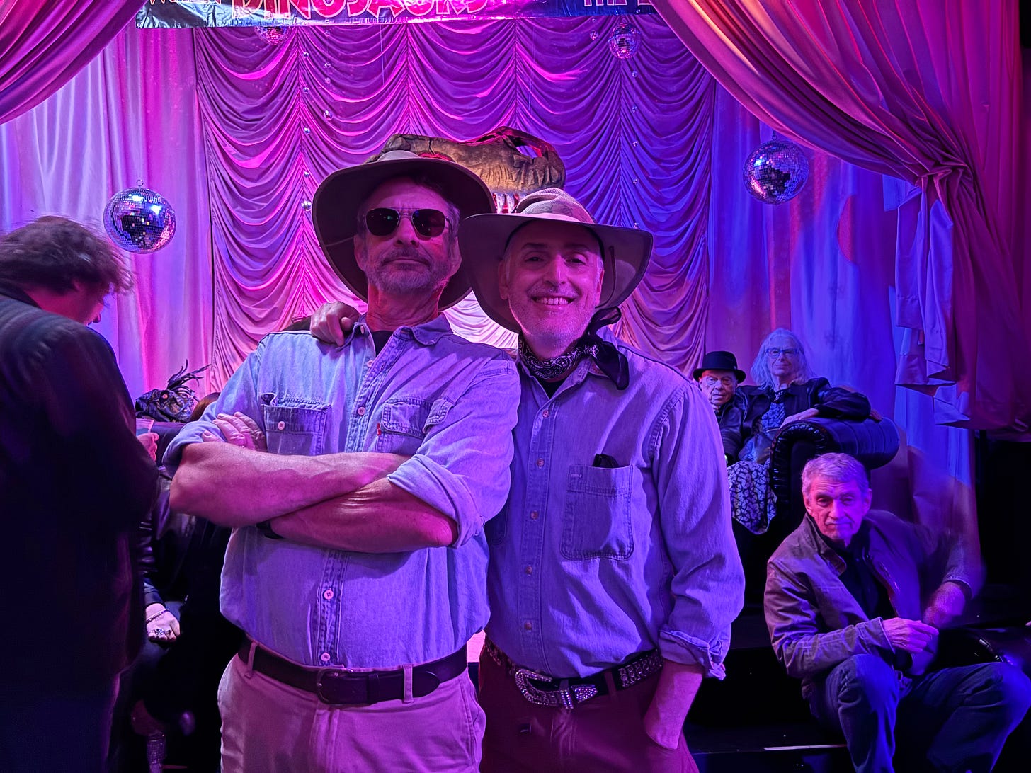 My husband and I went to see it on our seventeenth wedding anniversary. (Gay marriage—something else besides Netflix that didn’t exist in 1993.) I’d already seen a number of memorable shows at Oasis: sendups of Harry Potter, Sex and the City, The Real Housewives franchise, and 9 to 5, not to mention a raunchy live recreation of The Rocky Horror Picture Show. To get into the Jurassic spirit, we went to the show dressed as the Sam Neill character from the movie—